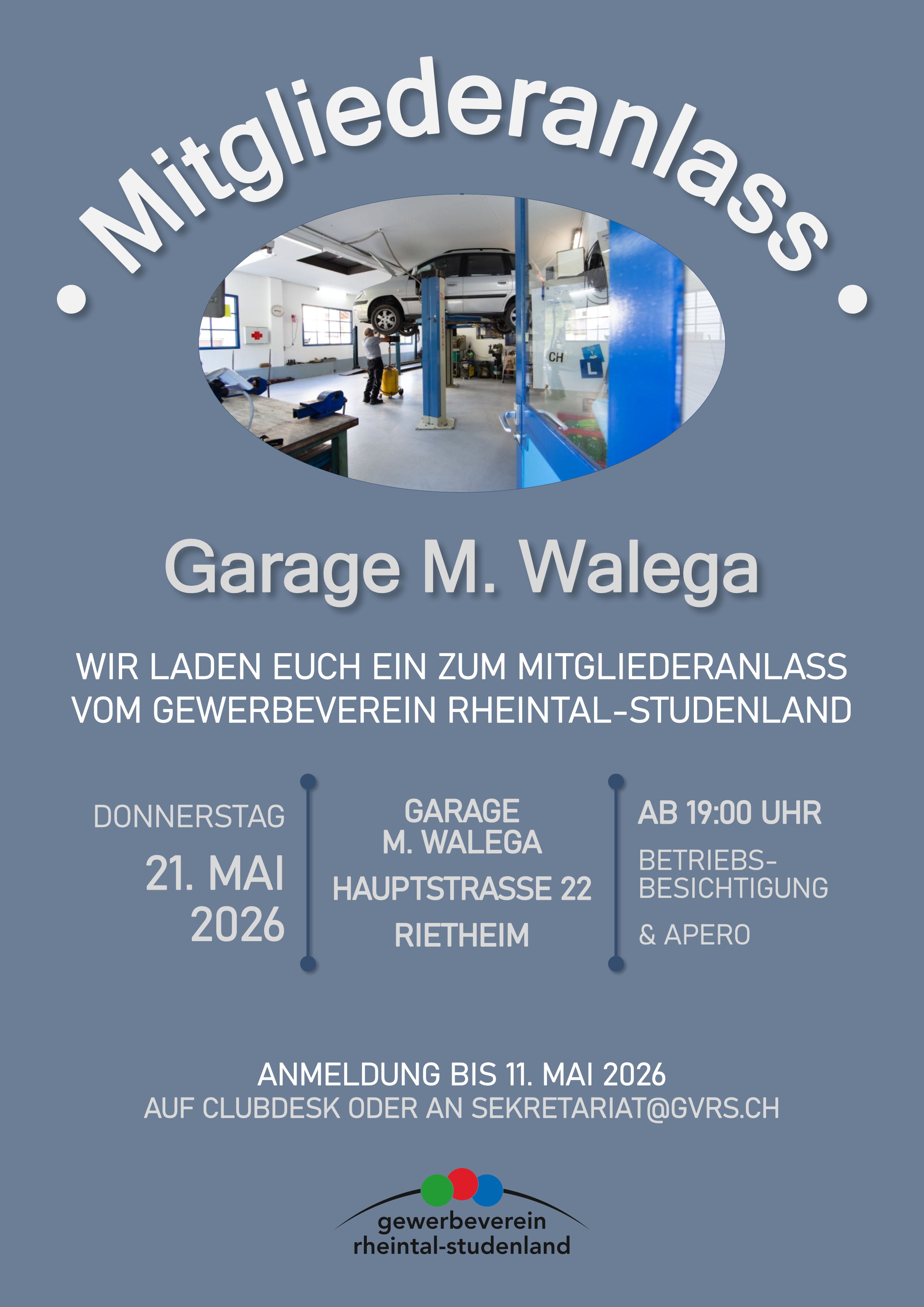 Hinweis: Anlässe des GVRS sind ausschliesslich den Mitgliedern vorbehalten. Als Nicht-Mitglied habt ihr die Möglichkeit an einem solchen Event einmal kostenlos reinzuschnuppern und euch von den Vorteilen einer Mitgliedschaft überzeugen zu lassen.